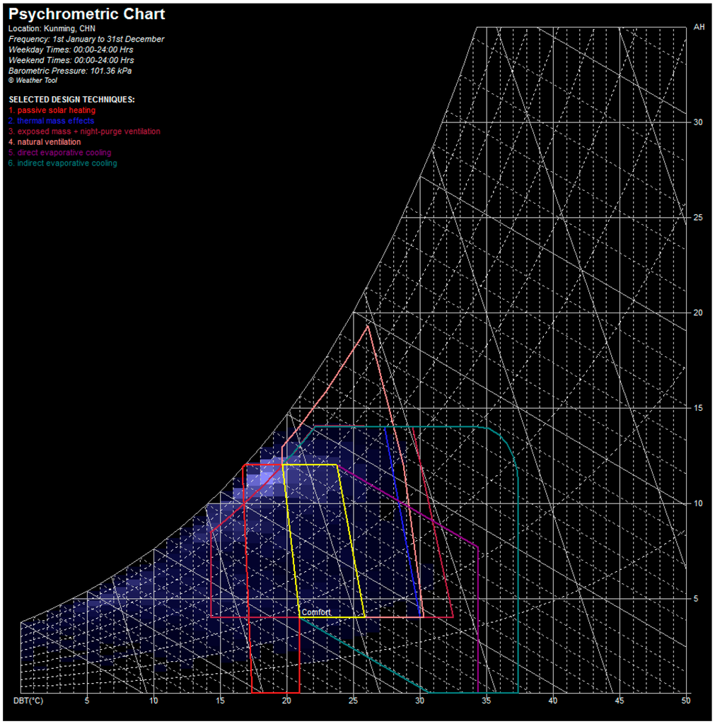Building bioclimatic chart for the city of Kunming showing the “control potential zones”.