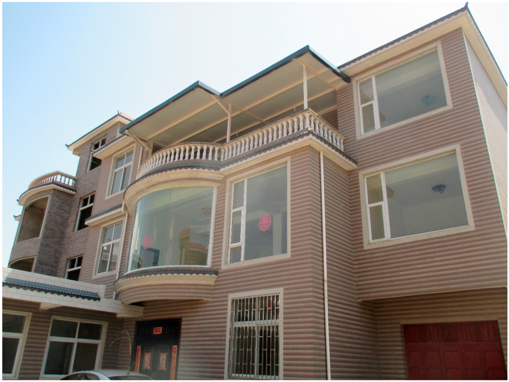 The package of initiatives to refocus development in rural areas was announced in early 2006 under the banner of “creating a new socialist countryside” []. The expressed aim was to enable residents of rural areas to catch up with their urban dwelling counterparts and to stimulate production from rural areas of those things where they were needed at the national level. This change seemed to recognize both the importance of the countryside and rural areas to complement the urban development that was taking place and also to recognize that not every citizen would live in cities. Indeed, it implicitly shows an understanding that rural areas ought to be successful in support of their more urban neighbours, both to help sustain them, but also to provide for recreation and to offer alternatives for longer term and more broadly set development. Liao [] has however identified some of the shortcomings of village life under present circumstances as including “the lack of basic infrastructure, poor sanitation, environmental contamination, chaotic building form and substandard building quality”.