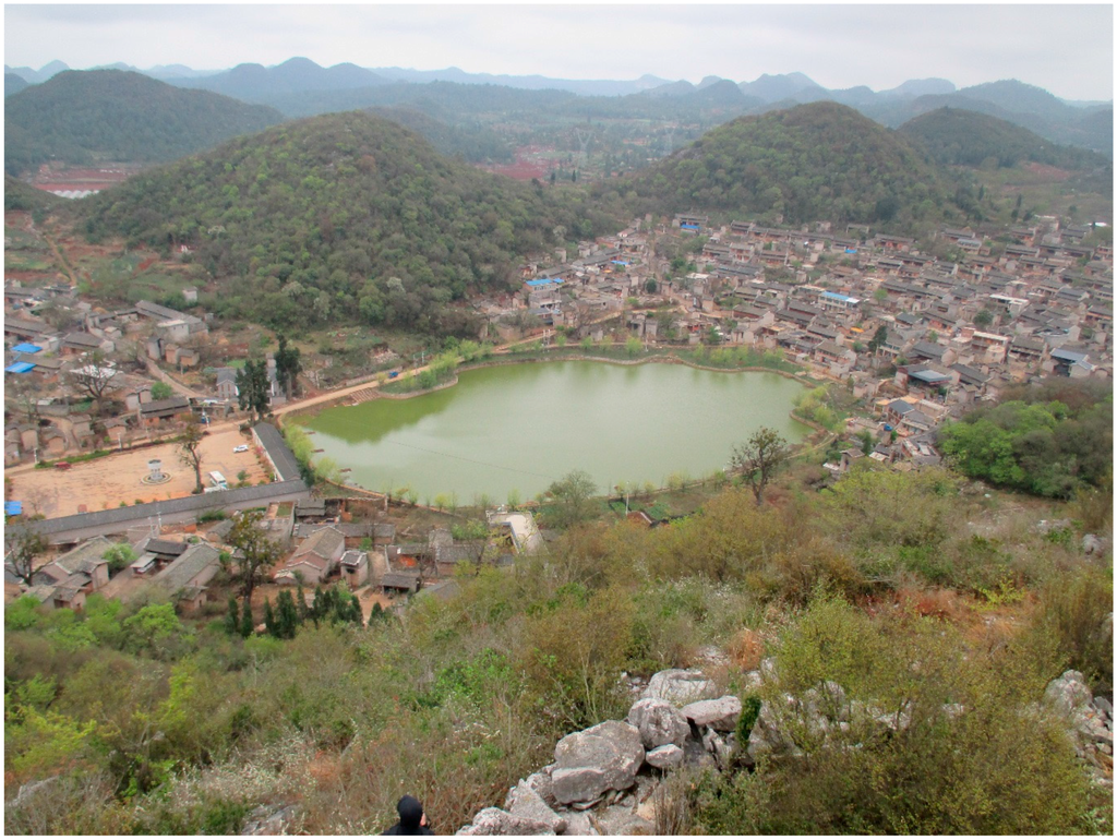 The village belongs to the Yi nationality group and specifically the Sani subgroup in Shilin County; there are 392 families and with 99% from that ethnic grouping []. The village was founded over 600 years ago and is situated approximately 2000 m above sea level on the plateau of central Yunnan and has a sub-tropical monsoon climate. The area is hilly, though not mountainous, and communication routes by road are relatively good. The total area of the village is almost exactly double that of Damoyu at 39.8 km2, and 86% of the ground is covered by land designated as forest []. The village is quite well known for its features and appearance, and in 2007, it was specified as the first “tourist” village in the area. It has also been a key site for anthropological investigation [].