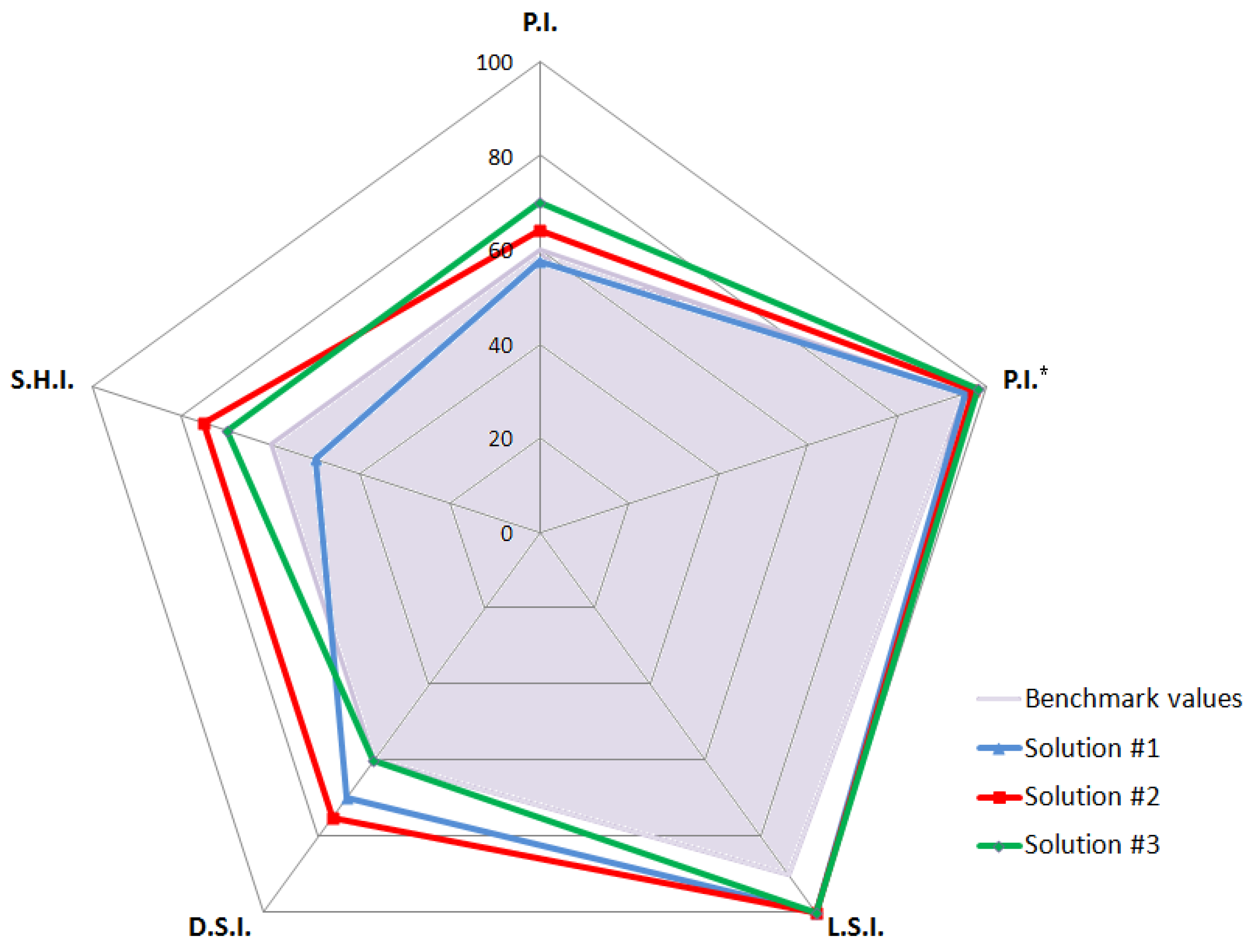 Figure 2 shows a possible application of the indexes in case of retrofit action choice. Experts in conservation define benchmark values for the five indexes; several solutions are tested, comparing the indexes values from simulation with benchmark values, thus identifying the best retrofit action to apply.
