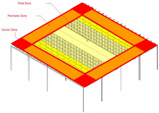 The entire assembly is modeled in zones as the Field, Perimeter and the Corner zone separately with fastener density specified in the standards for the specific areas.