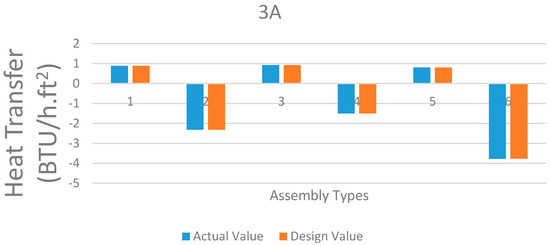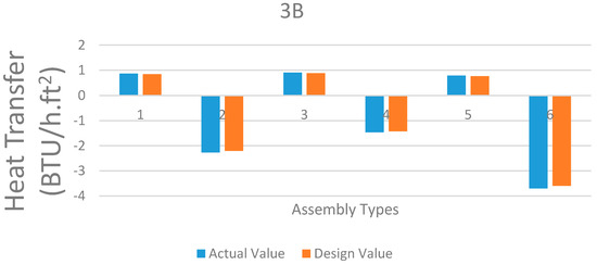 Figure 9 shows the comparative study of heat transfer through the roofing assemblies under different design conditions. It also provides a graphical representation of the extra heat wastage in the practical/actual case compared with the ideal design case without considering any effect of metal fasteners. It is clearly visible that a large amount of heat losses incurred due to the phenomenon of Thermal Bridging due to metal fasteners and plates. Another notable synopsis is that the heat losses in case of Assemblies 3A and 3B are not only much lower than 1A and 1B but also the relative change in heat loss due to Thermal Bridging is minimal.