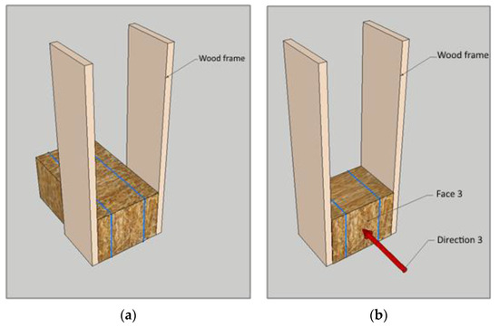 (a) Example with straw bales laid on surface 2 and heat flow following direction 3; (b) Example with straw bales laid on surface 2 and heat flow following direction 3. The length of the straw bale has been reduced.