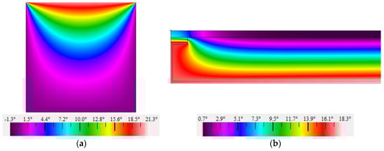 Temperature distribution obtained for the 2D test cases of EN ISO 10211 []: (a) Test Case 1; (b) Test Case 2.