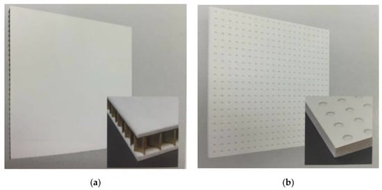 Sound absorption panels used in the experiment; (a) Type A paper with honeycomb structure; (b) Type B paper with perforated cardboard on the surfaces.