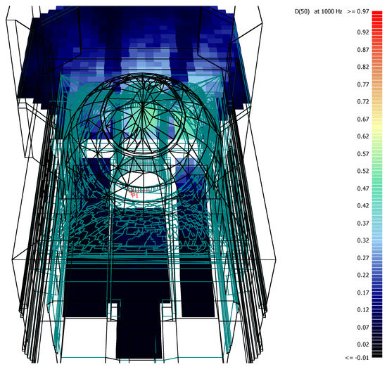 Spatial distribution of definition (D50) in the octave band of 1 kHz.