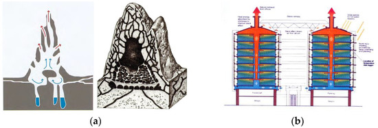 (a) The architecture of termite mound [38]; (b) The Eastgate Centre, Harare [39].