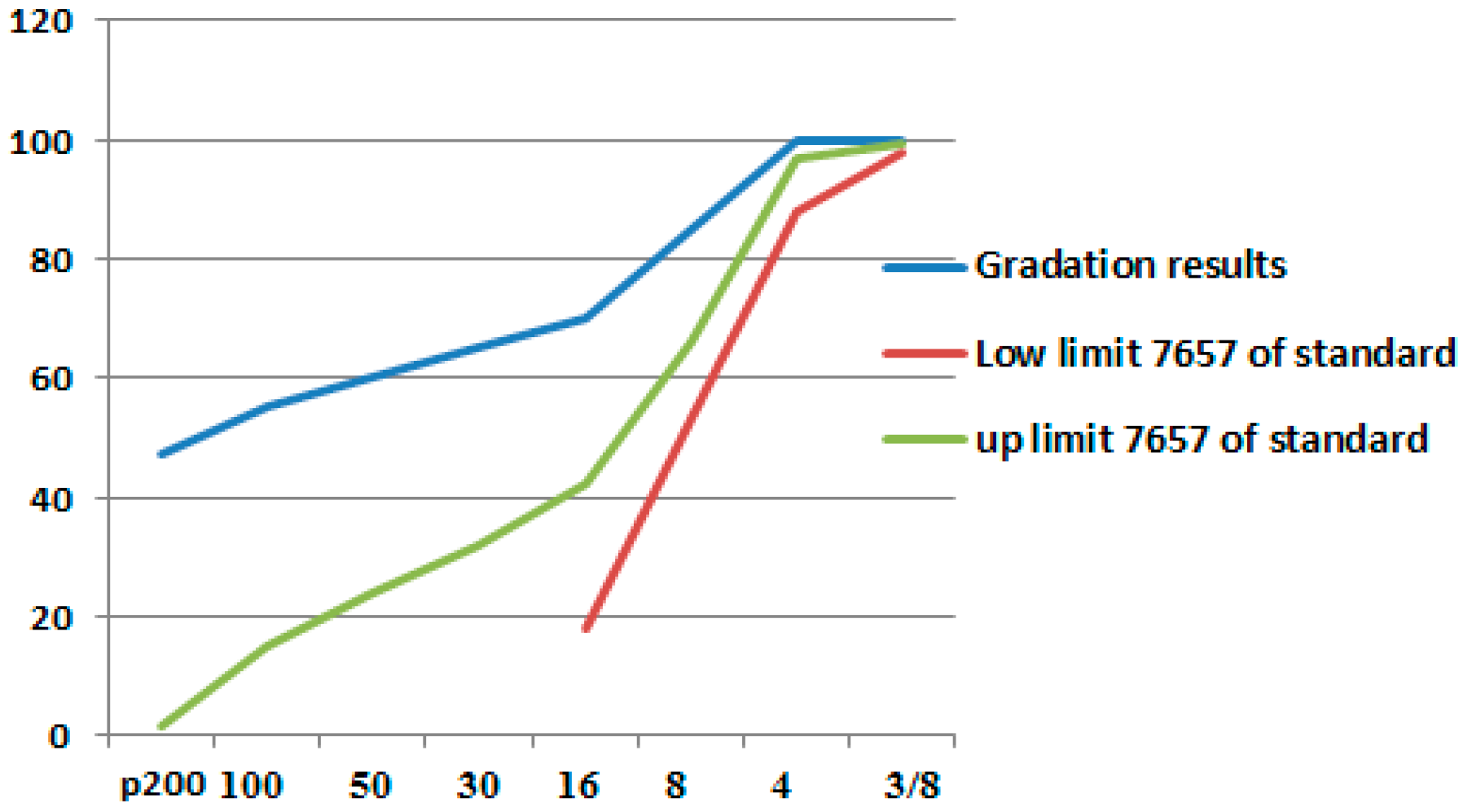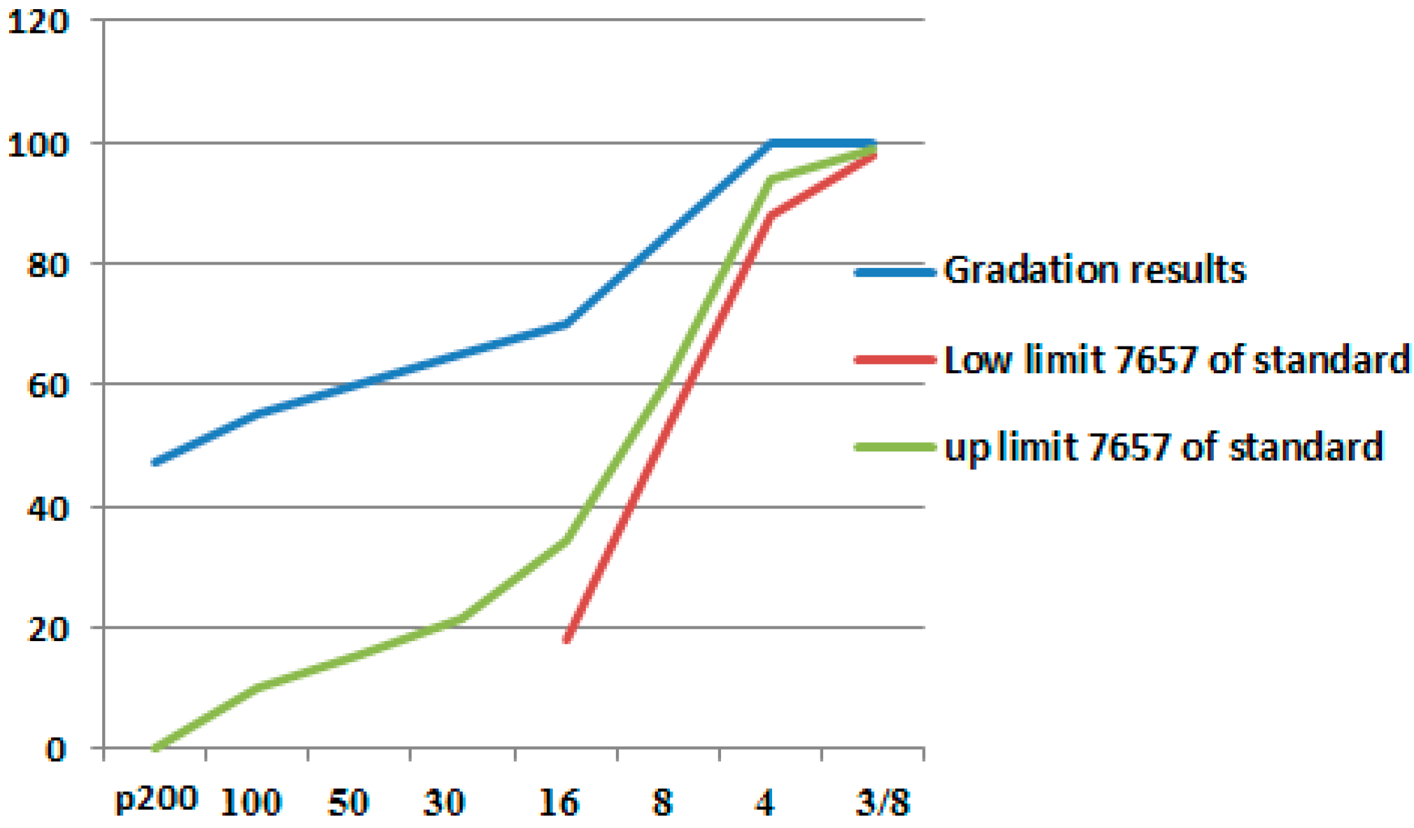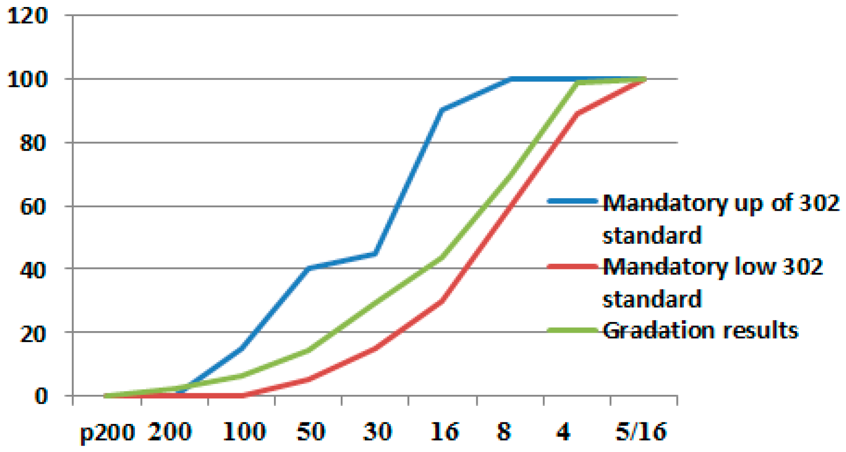 The grading curve of sand becomes out of the optional range defined in the standard of 302 (characteristics of concrete aggregates) [20], so a broader, mandatory range has been considered.