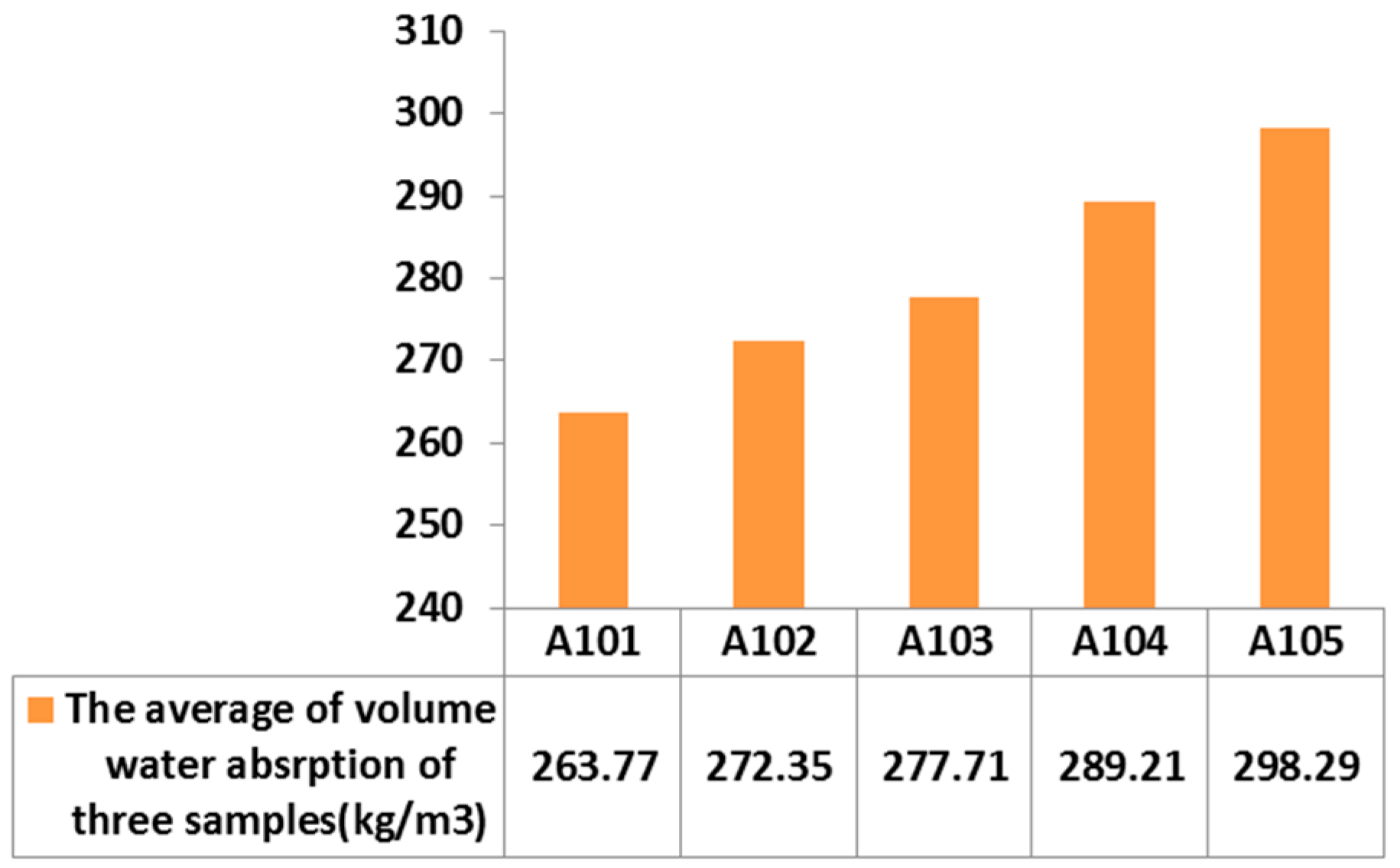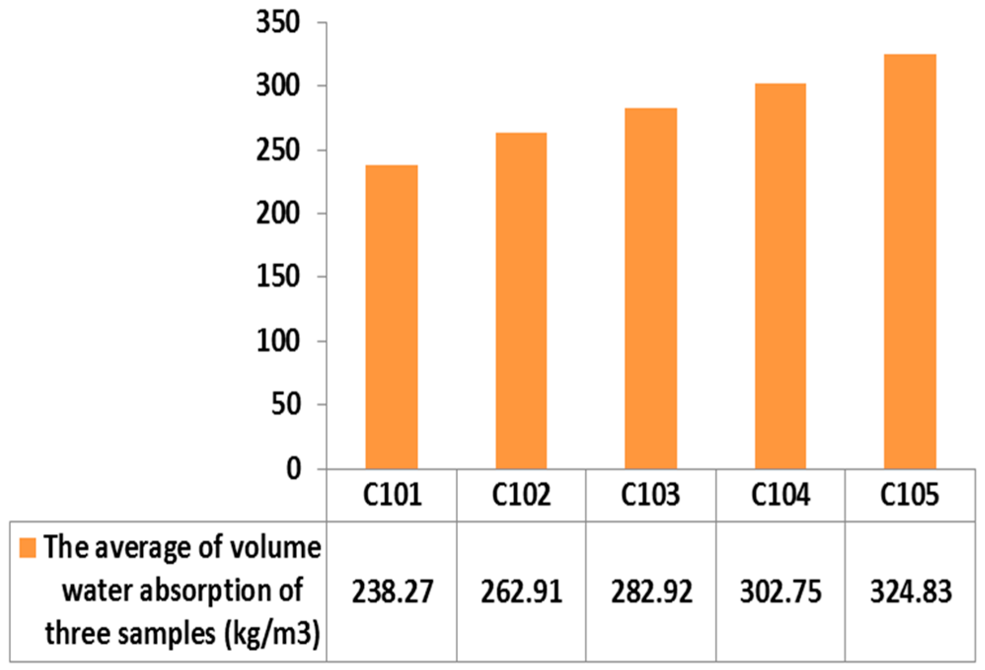 - Pumice blocks with the lowest density (964.27 kg/m3) have the highest water absorption volume (322.20 kg/m3). This is not in accordance with the national standard of 7782, so it is not acceptable.