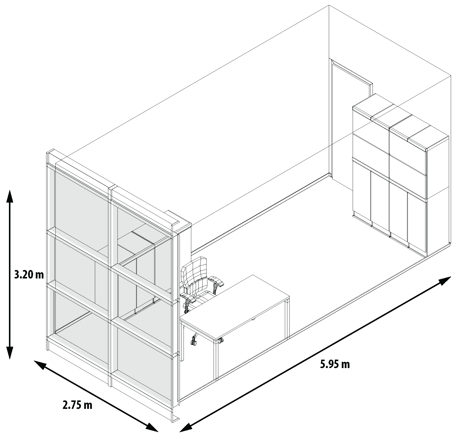 Cellular office as a test case for simulations employing BSDFs of different directional bases. CFSs are applied in the two upper zones of the fenestration, the lowest zones is opaque.