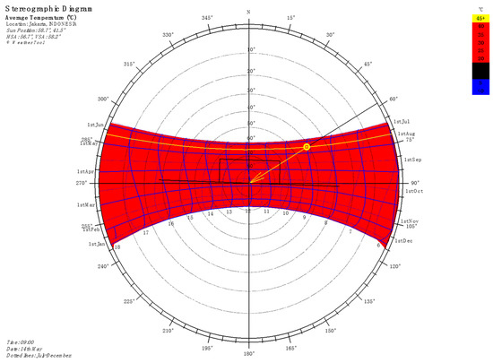 Sun path diagram of Jakarta (Autodesk Ecotect Weather Tool Software) [47].