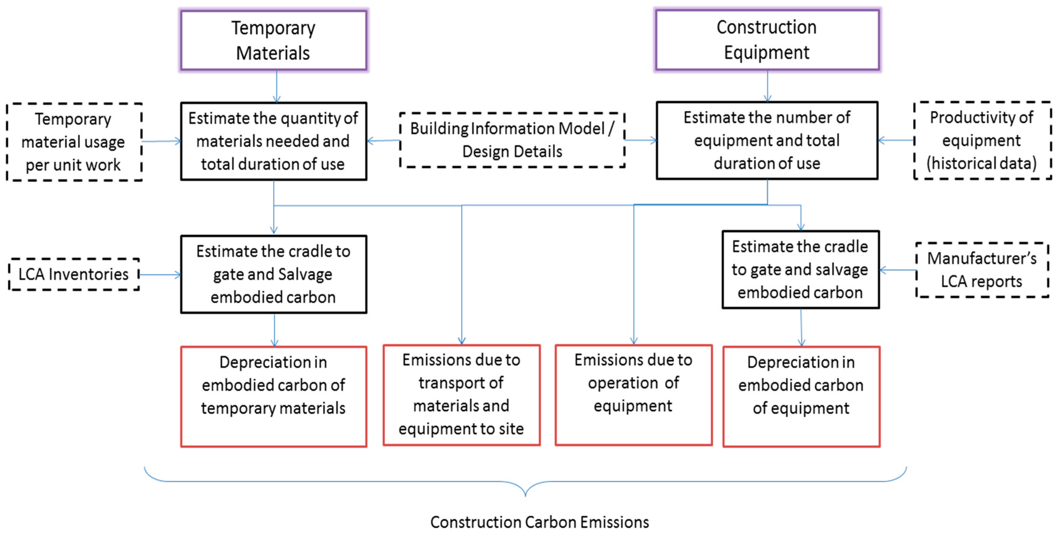 A framework for the estimation of carbon emissions incurred during the construction phase.