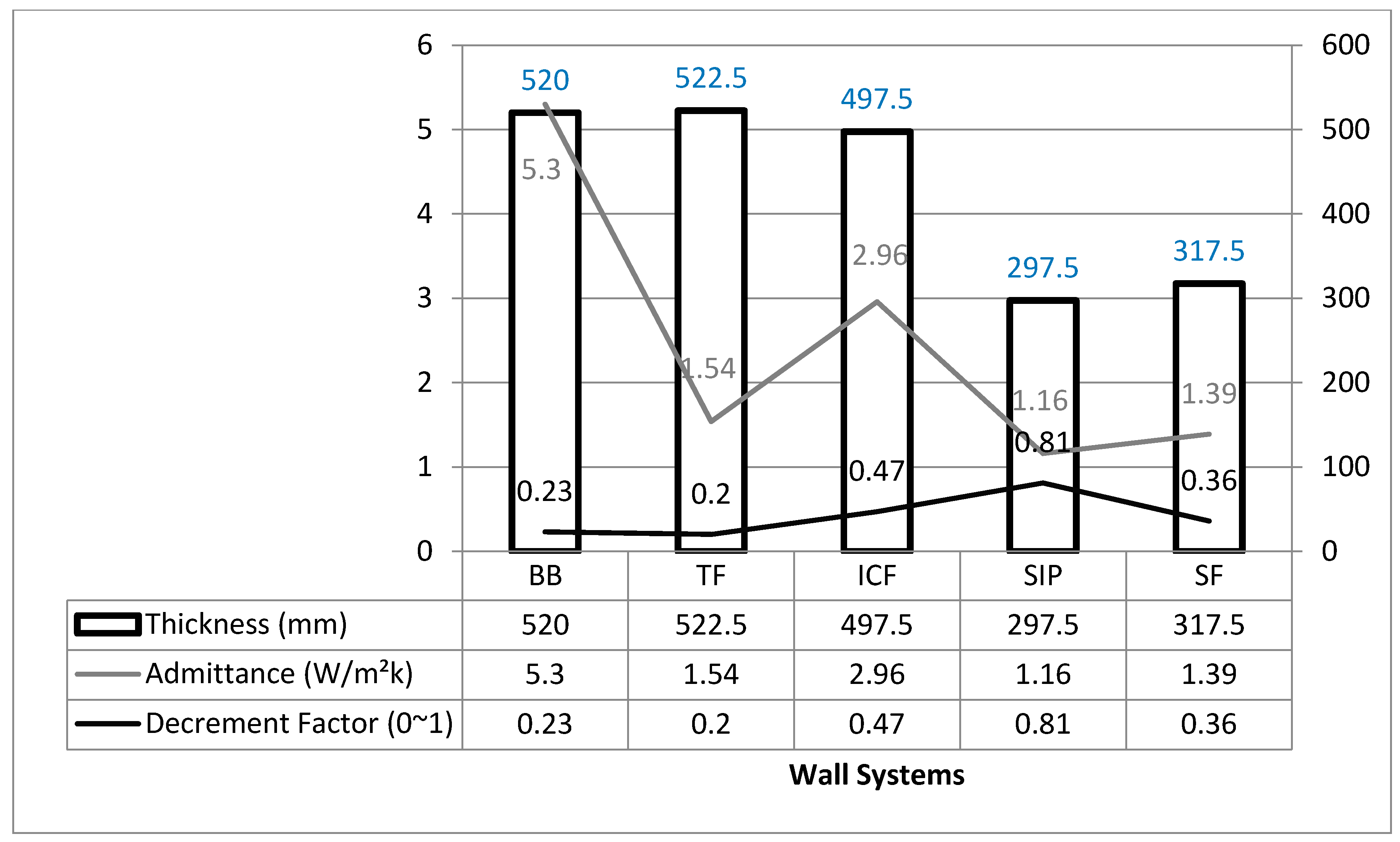 - Although decrement factor and admittance factor do not necessarily characterize the behavior of the construction systems, it seems that a low level of decrement factor (TF) demonstrates maximum discomfort hours most of the time.