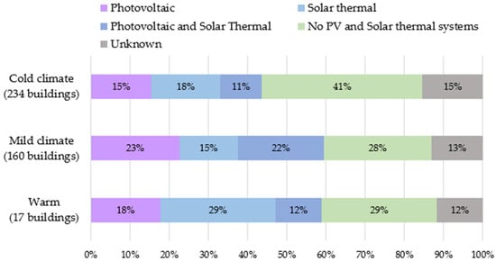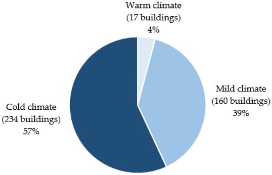 It is important to point out that, due to the reduced number of buildings available in the sample, as shown in Figure 2, the technology analysis in the warm climatic zone could have a lower representativeness than the analysis in the mild and cold climates.