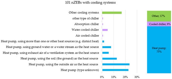Share of cooling system typologies used in selected nZEBs (a total of 101 buildings with cooling systems).