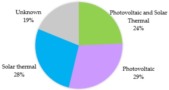 It is apparent that the integration of renewables is crucial in an nZEB; in fact, it occurs in 81% of the cases in the sample, since most of the national definitions require a minimum amount of energy produced from RES according to the indications of the EPBD. In particular, the installation of PV accounts for 29% of the sample, and ST systems is around 28%, as shown in Figure 23. Finally, the 24% of nZEBs collected uses both systems (PV and ST systems), while, in 19% of the cases, the detailed information is missed.