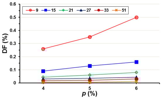 | Category | Min. Standard DF (%) | Min. Recommended DF (%) | Mean Recommended DF (%) |