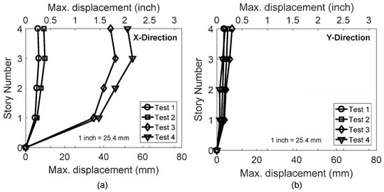 Building displacement profile in (a) the X-direction and (b) the Y-direction.