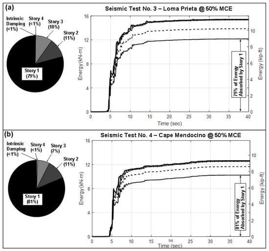 The performance of the building was evaluated with regard to the amount of earthquake energy dissipated at each story of the building. The larger the area enclosed by the hysteresis curves of the lateral resisting elements of a story, the more energy that story dissipates. The percentages of the energy dissipated at each story of the retrofitted building are shown in Figure 20. The detail of calculating dissipated energy by each story is presented in Bahmani [16]. It can be seen that about 80% of the ground motion energy was dissipated at the first story due its high displacement and nonlinear response. This confirms that the FEMA P-807 retrofit method requires the first story to absorb a significant portion of earthquake ground motion.