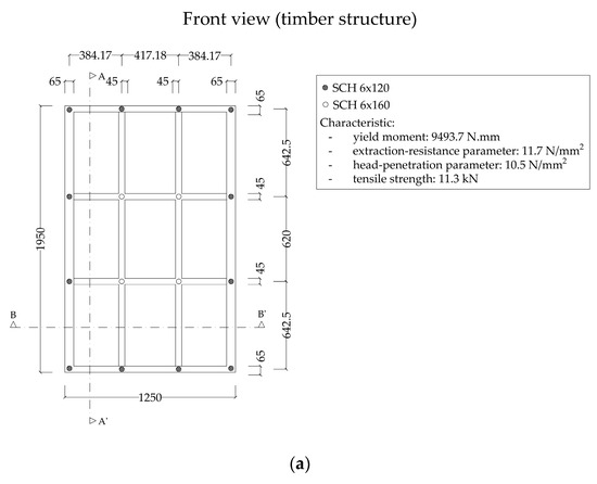 The internal timber structure of all panels was composed by elements of C24 strength class according to EN 338. The OSB used as sheathing elements was fixed to the internal timber structure using 3.5 mm × 35 mm screws and polyurethane glue for timber.