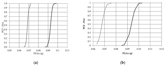 Figure 15. Fragility curves, (a) Building A; (b) Building B.