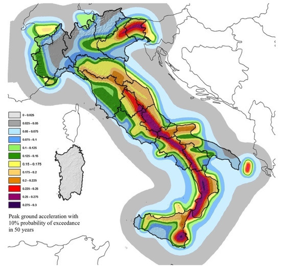 - Italian Institute of Geophysics and Volcanology: Map of seismic hazard. Available online: https.www.ingv.it (accessed on 1 June 2017).