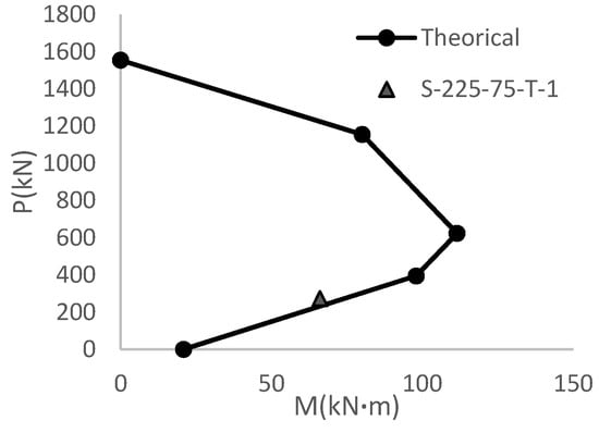 Theoretical interaction curve for the S-225-75-T-1 specimen with the experimental P-M pair.