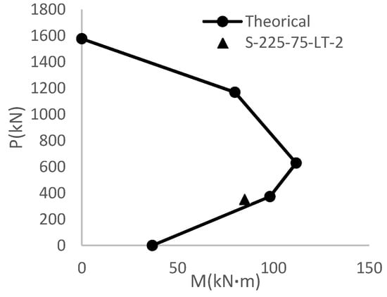 Theoretical interaction curve for the S-225-75-LT-2 specimen with the experimental P-M pair.