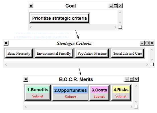 Now we use an ANP model to rank them in order to choose the best one. In particular, a complex B.O.C.R. model is implemented with separate models used for analyzing benefits, opportunities, costs, and risks.