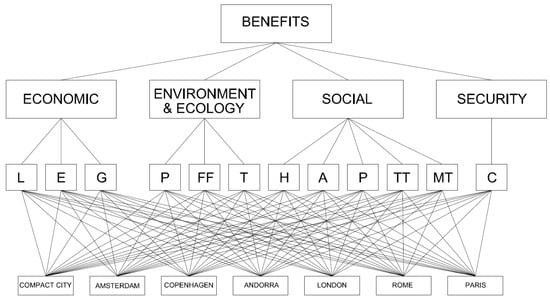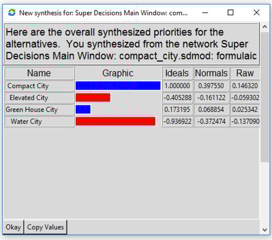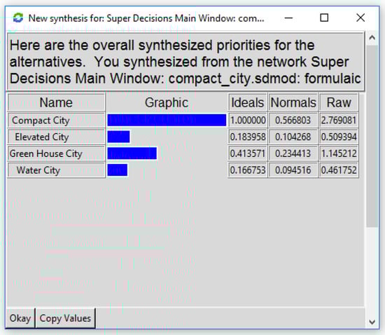 Figure 4. Also in this case, the results highlight that the compact city is the preferred alternative in the long-term for the cities of the future. The only other alternative is the green house city.