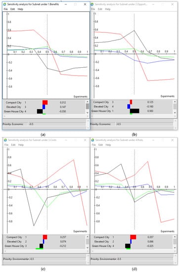 Figure 5). According to sensitivity analysis, in the short-term the compact city is always the best alternative followed by the green house city.