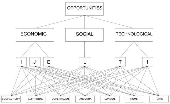 For the opportunities model, the compact city presents the greatest opportunities followed by the green house city (see
