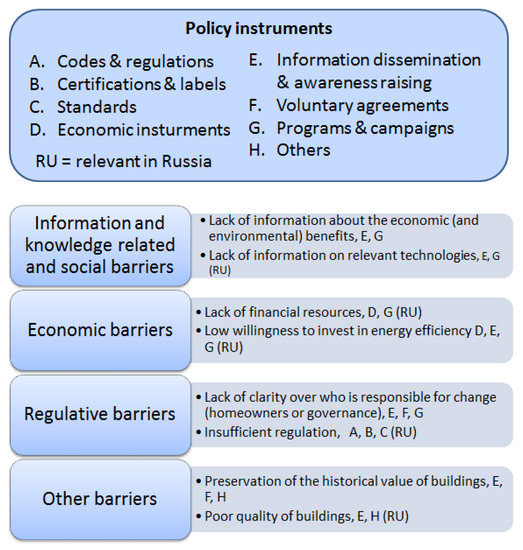 Barriers for energy efficiency and applicable policy instruments in the Russian context.