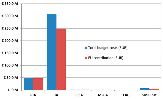 Total budget costs and EU contribution per funding scheme. Source: author. For explanations of abbreviations see Table 1.