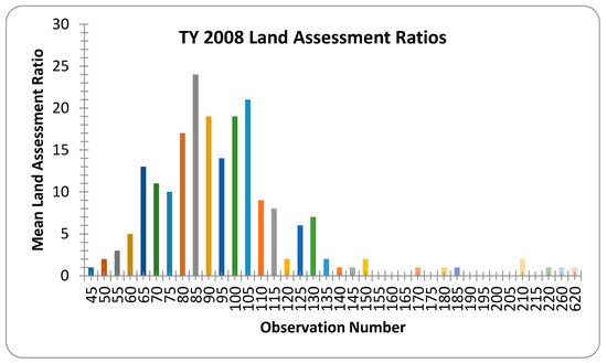 The International Association of Assessing Officers (IAAO) has promulgated standards for these statistical indicators, which have been adopted by states, local jurisdictions, and courts (IAAO Standard on Mass Appraisal [15] and IAAO Standard on Ratio Studies [10]). The most common tool is the assessment ratio. The assessment ratio is calculated by gathering a sample of ‘qualified’ sales (at the parcel level), and measuring the tax assessment for each sampled property against the sale price of that property. A ‘qualified’ sale is a transaction between a typically motivated buyer and a typically motivated seller. A sale between family members, a foreclosure sale, a sale by the government, a transfer to or from a charitable entity, and auction sales are examples of reasons to disqualify a sale. An assessment divided by the sale price produces an assessment ratio for a single observation. The sample of sales is used to generate an estimate of a total assessment ratio for the jurisdiction. The total assessment ratio is typically the median ratio within the sample. The median is favored because it discounts the influence of outlier ratios and multimodal results. A mean, or average, ratio is calculated as a tool for determining assessments using regression analysis. For a split tax, it is crucial to extract the value of land from each property’s overall sale price in order to calculate a separate ratio for land since the accuracy or quality of the land assessment is important.