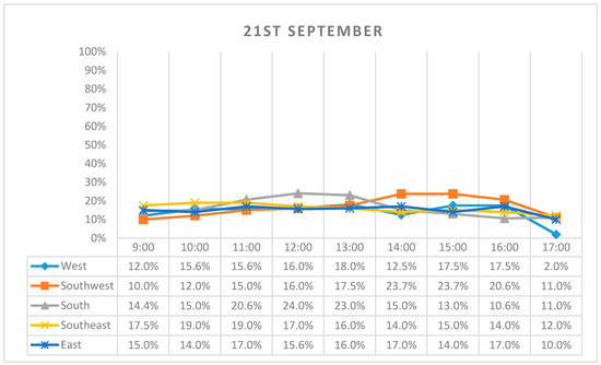We can observe in Figure 11 that the coverages percentage in all of the orientations are almost equal with few variations due to climate changes, which means that these orientations has no effect on conventional system.