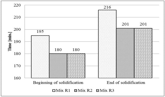 | Recipe | Beginning of Setting (min) | End of Setting (min) |