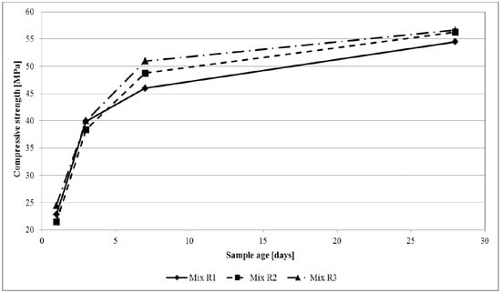 3.4. Test Results of the Strength Characteristics of Cement Composites