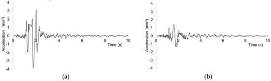 Figure 1a,b show the accelerograms of the horizontal components from the most severe recordings of the event. The data indicate that the quake had an impulsive character, especially in the North–South component [28].