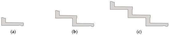 Riser beam typologies: schematic view of (a) single, (b) two and (c) three-element riser beams.