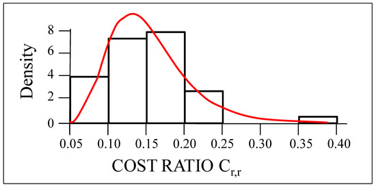 Consequently, cost ratio functions can be defined as theoretical probability density functions that best fit the empirical one derived from analytically defined datasets of global building cost ratios.