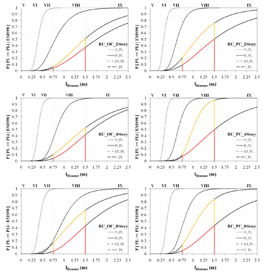 - Vona, M. Fragility curves of existing RC buildings based on specific structural performance levels. Open J. Civ. Eng. 2014, 4, 120–134. [Google Scholar] [CrossRef]