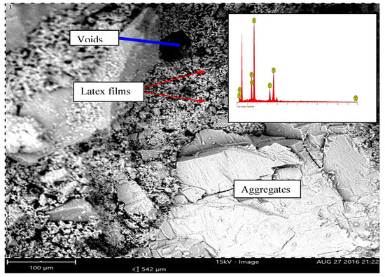 - Ahmed, M.D.; Hafez, E.E.; Ali, H.A. Experimental investigation of the effect of latex solid/water ratio on latex modified co-matrix mechanical properties. Alex. Eng. J. 2013, 52, 83–98. [Google Scholar]