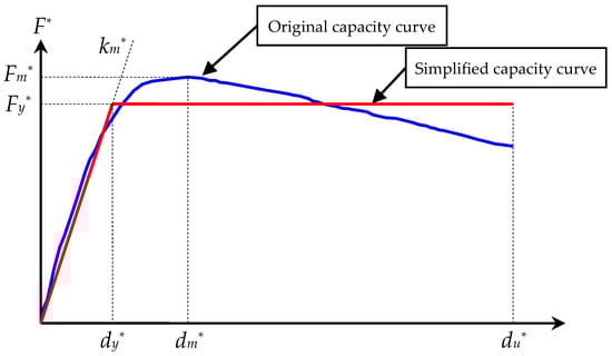 being Eu* the total area limited by the original capacity curve until the ultimate displacement du* (which is equal to the total area limited by the simplified capacity curve) and Em* the area limited by the original capacity curve until the displacement dm*.
