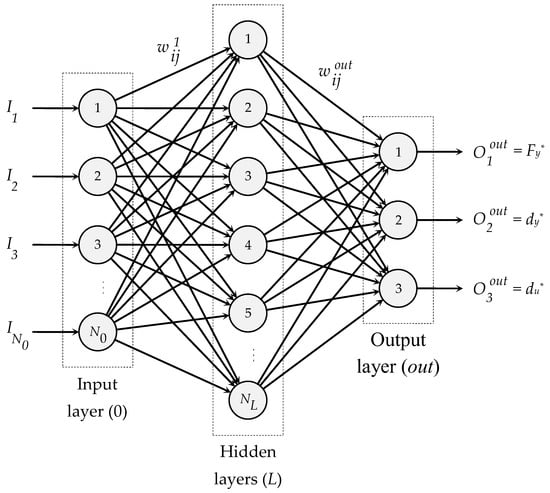 There are many different types of ANNs. In this work, a general MFFNN is proposed to obtain the parameters of a simplified capacity curve (Figure 2), which is previously trained with the error back-propagation algorithm.