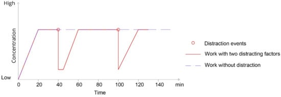 Moreover, people need a time variable from 15 to 20 min to achieve the concentration necessary to carry out intellectual activity (Figure 2).