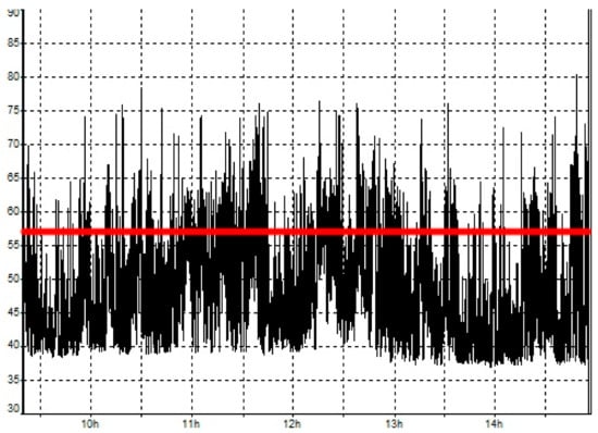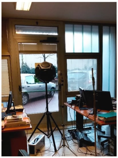 Environmental noise measured in the case study office (Figure 3) in the time slot 9:30–15:00 (LAeq = 57 dB(A)) [].