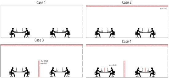 The acoustic improvement in open plan offices can be usually achieved by introducing a sound absorbing false ceiling and high dividing panels, but literature shows that there can be different results depending on the spatial configuration of the office [].