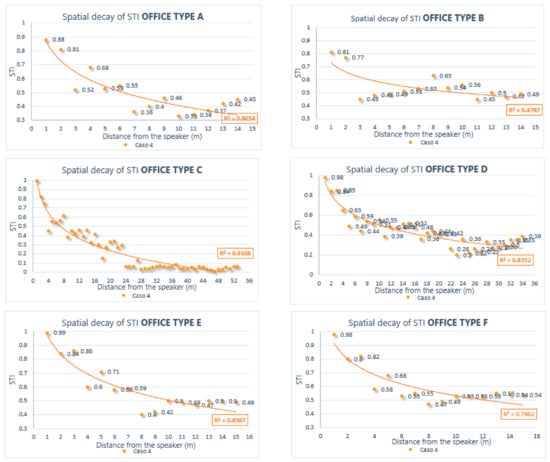 Analysis of spatial decay of STI in all types of offices analyzed, referred to as configuration 4.