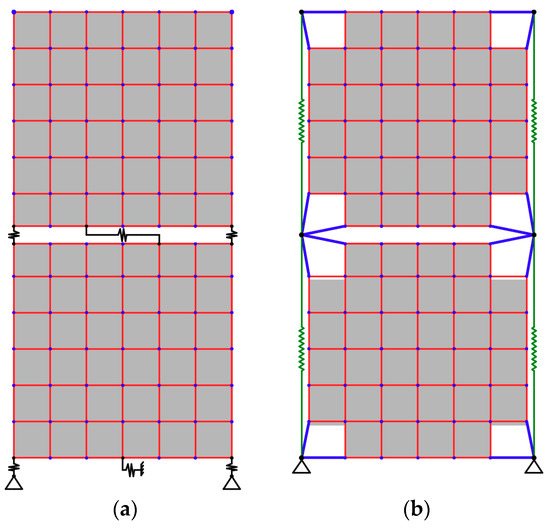 Finite element (FE) representation of shear wall: (a) type A systems; (b) type B systems.